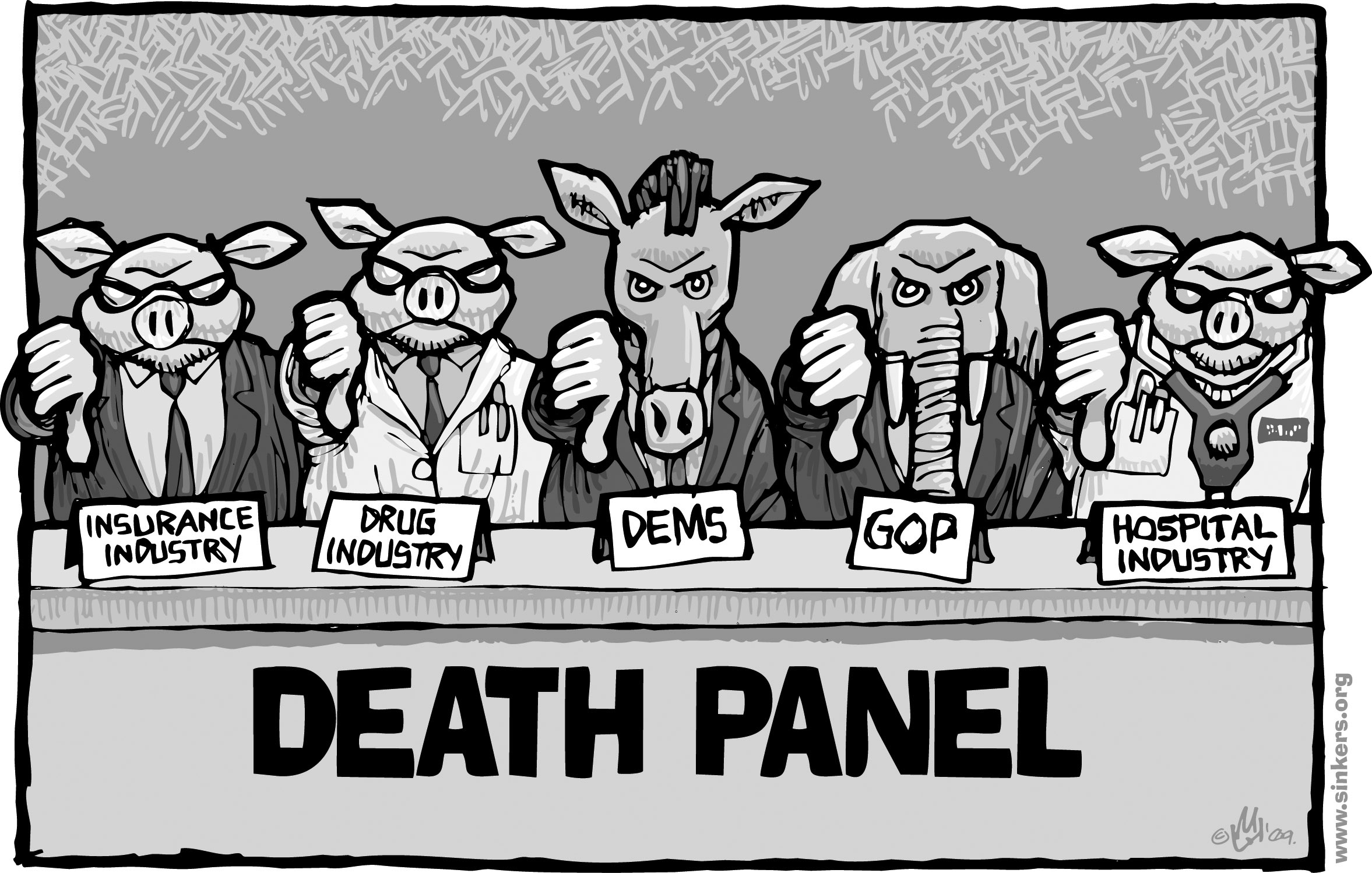 Here’s the truth. If there is a medical procedure to be done, someone is going to have to be paid to do it. Any group of people who refuses to pay the cost of a procedure, is a “death panel.”