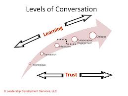 That collection of four statements is not a conversation. It is not about anything. To say what a conversation is…well, it’s hard. It’s a way of talking together, not some topic in particular.[4] For our purposes, I will call it a conversation if it is about one thing and if the participants act as colleagues in developing the topic.