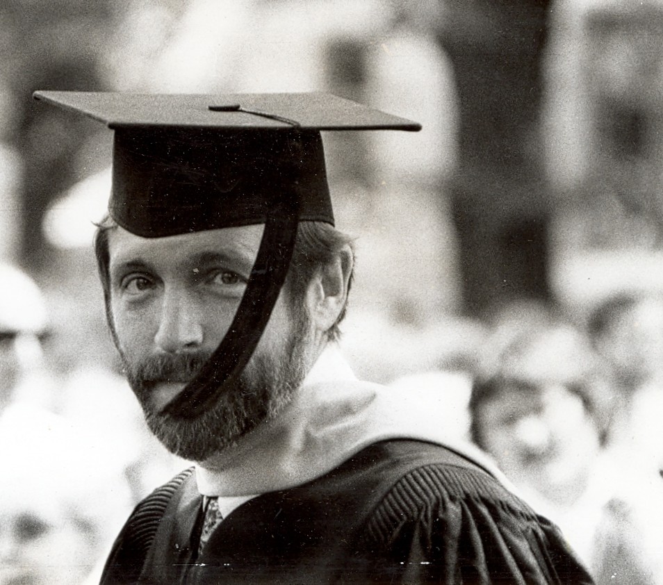 when that marriage ended and sixty years or so when my second wife died and I got to wondering what was going to happen when I was eighty years or so old. Partly for that reason—it wasn’t just the symmetry of the design—I decided to propose that Bette (third wife) and I move to a senior center in 2017, when I would be eighty years old. This picture is from that same era and I did remember to take a victory lap around the track at the University of Oregon when they granted me a Ph. D. The kids all ran with me.