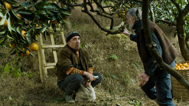 tangerines and Ivo (Lembit Ulfsak) can’t go because he is making the crates for Margus’s tangerines. [1] It’s a long way to Estonia, about 1500 miles, but, beginning in the 1850’s Tsar Alexander I began colonizing George with farmers from Estonia. Before the war that came with Abkhasia’s attempt to secede, there were a lot of Estonians in the region. Now there are Ivo and Margus.