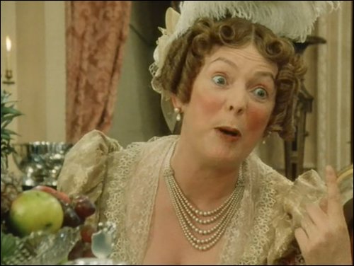 amid the hurricane force moods of his wife. The wife is so obnoxious that I felt an immediate admiration for Mr. Bennet just for being unmoved. In one of the early scenes, for instance, Mrs. Bennet is lamenting at the very top of her emotional range.