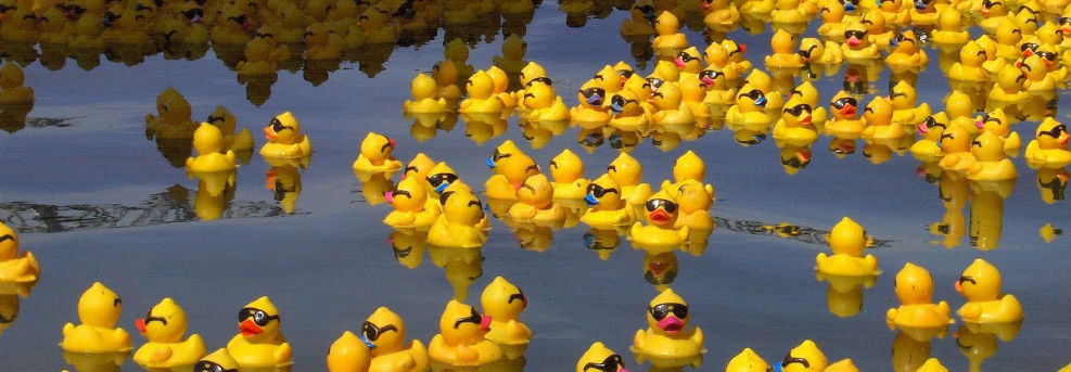 happy 8If that is what you are like—and there are lots of studies of people who have had really awful things happen to them and who, afterward, feel pretty much as satisfied with their lives as they were before—then you feel a lift toward happiness whenever it is not being prevented. There are events that tie a couple of concrete blocks around your ankles and you discover that under the circumstances, you are no longer buoyant. But there are people who are no more buoyant when the concrete blocks are removed than they were before. They are not buoyant. They have learned how to be submerged permanently. Other people start moving toward the surface as soon as the blocks are removed. I am one of those.  Being a Duck (U of O) myself–I am the one at the far left, just swimming out of the picture–I prize buoyancy more than some others.