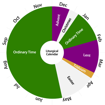 [1]Advent, Christmas, Ordinary Time (Time after Epiphany), Lent, Easter, and Ordinary Time (Time after Pentecost).