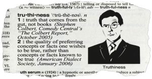 , might be called plausibility. But how shall we assess the kinds of questions that cannot be answered by adducing evidence? For people who persist in asking such questions, some standard needs to be found. “Truthiness” is a way of supplying such a concept and making fun of it at the same time.