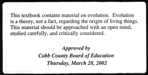the facts that support the theory. The school board makes up little stickers that say (Evolution is a theory, not a fact) and stick them in the text where assertions about the adequacy of the evolutionary point of view are asserted. Page after page, lies are told about the relationship of facts to theories.