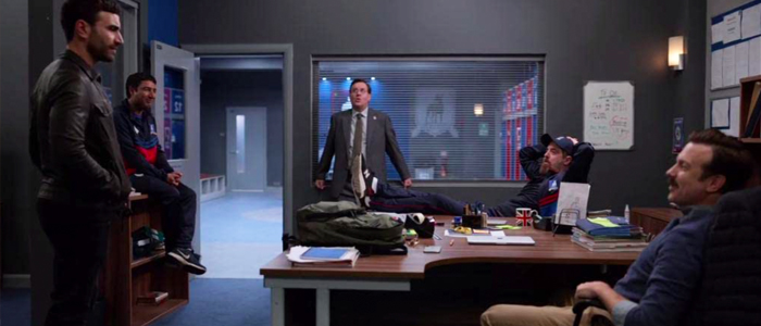 made, like “All that Chandler Bingin’ aside…” for instance. Nate remarks, “S’Wonderful,” and Ted says, “Oh, nice shout out to the Gershwin brothers there.” Ted pretends to be making the case supporting Roy’s jealousy, but in fact, is all ironic and Nate says, “Oh, he means the opposite. I love it when coach does that.” Roy says, “I can’t control my feelings,” and Ted responds in way over the top mode, “Well, then by all means, let your feelings control you!” And Higgins says, “Oh….he’s doing it again.”
