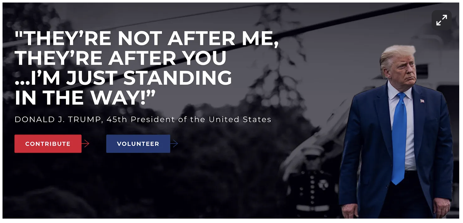 You see that it is a Trump campaign poster. You can recognize him even in the blue tie. Think for a minute about who “They” is in this admonition. It isn’t just the Democrats. It is the nebulous evil organization he sometimes refers to as the “deep state.” It is the swamp he promised to drain. “They” are swamp demons.